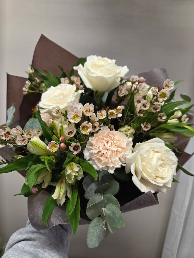 Bukett med ett blomstervärde av 600 kr